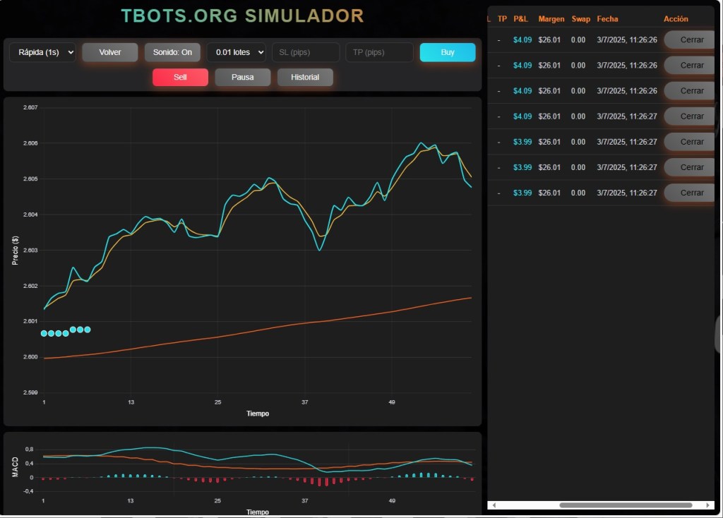 The TBOTS App is an interactive web application designed for trading enthusiasts to practice and refine their trading strategies in a risk-free environment. Featuring a sleek, modern interface, the app offers real-time XAU/USD price charts with EMA and MACD indicators, allowing users to execute buy and sell trades with customizable lot sizes, stop-loss, and take-profit settings. The app includes a user-friendly login system, a profile dashboard, and access to external resources like TradingView charts and the TBOTS.org website. Additionally, it is integrated with the Utopia and Roadster projects, enabling users to download files associated with active IDs from these platforms. With responsive design, sound effects, and downloadable trade-related files, the TBOTS App provides an engaging and educational trading experience.